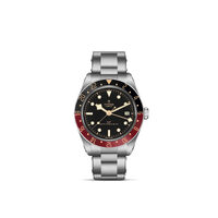 Cassa in acciaio, 39 mm, Lunetta nera e bordeaux